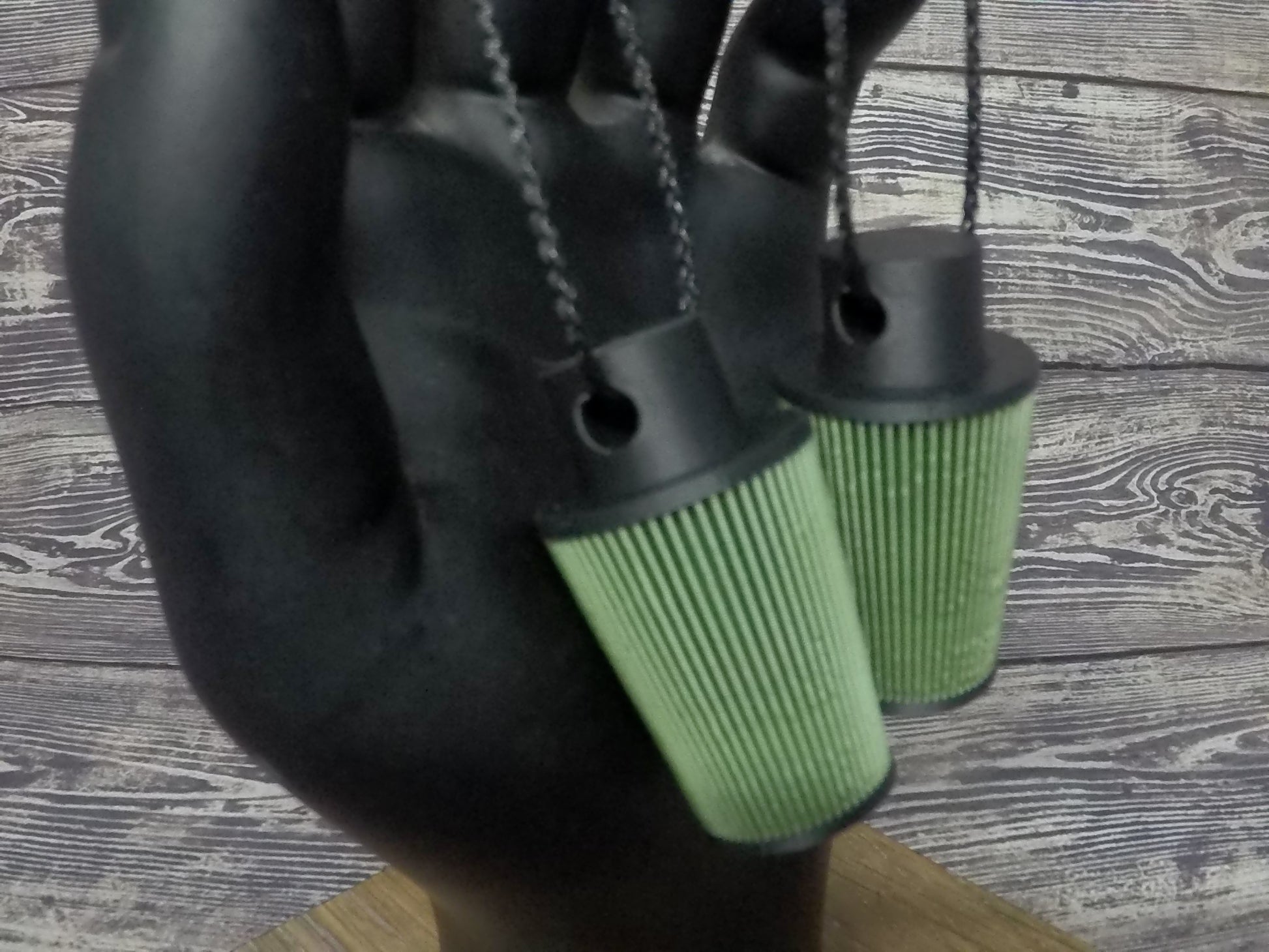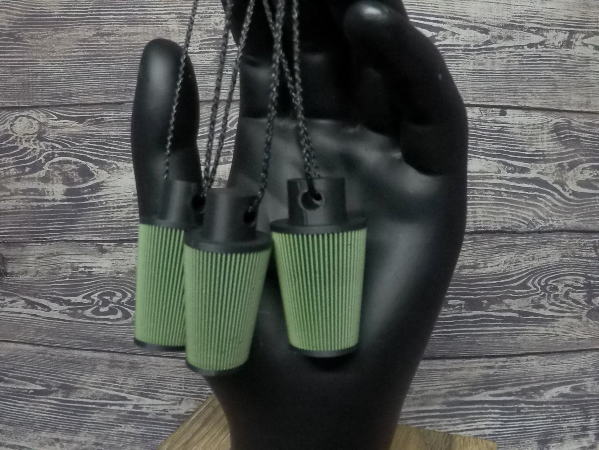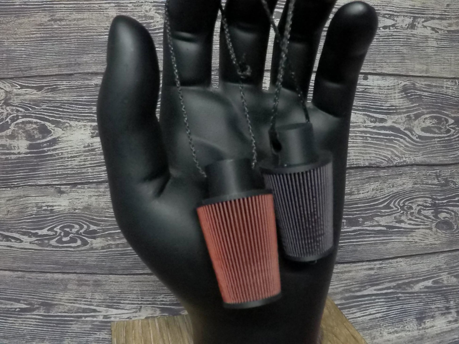 Automotive air filter keychain. Highly detailed pleats in the filter. These come with a micro paracord but can be swapped over to the key ring easily if you so choose. Great gift, add it to your bug out bag, kids backpack, or even hang it from your cars mirror! Available in round shape or oval.